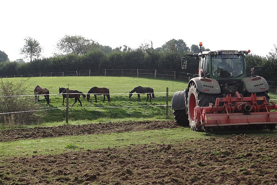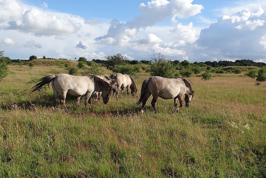 - Auf bestehenden artenreichen Grünlandflächen soll die pferdebezogene Nutzung (ggf.) optimiert werden. Die Erfolgsfaktoren sollen herausgearbeitet und auf weniger artenreichen Flächen zur Anwendung gebracht werden. Wo artenreiches Grünland (u. a. FFH-Grünland) aus der Nutzung zu fallen droht, soll dieses beispielhaft durch die Erzeugung von Pferdeheu sowie durch die Entwicklung von an die Vegetation angepassten Beweidungssystemen erhalten bzw. entwickelt werden.
